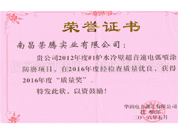 防磨防腐噴涂榮譽(yù)證書